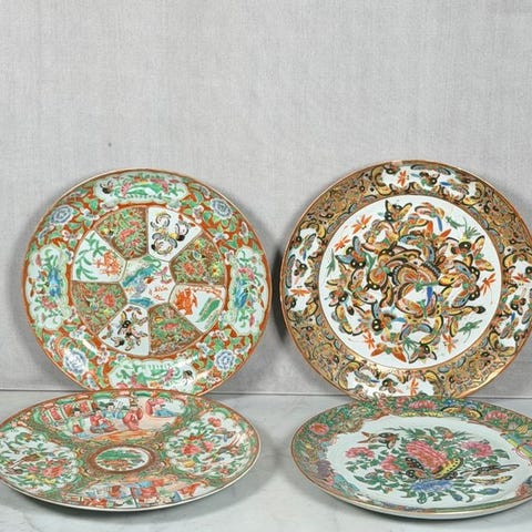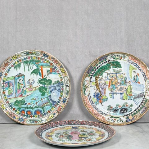 Porcelæn dansk/kinesisk tallerken dekoreret i familie-rose-paletten med mandariner, fra Qianlong-perioden (1736–1795), ca. 1750–1800, diameter 15,5 cm, højden 15,5 cm og dybden 3 cm, i fremragende stand. Klik på den blå "gå til varen" knap, for at købe eller byde på denne vare. Den samlede pris vil blive vist inden du afgiver dit bud.