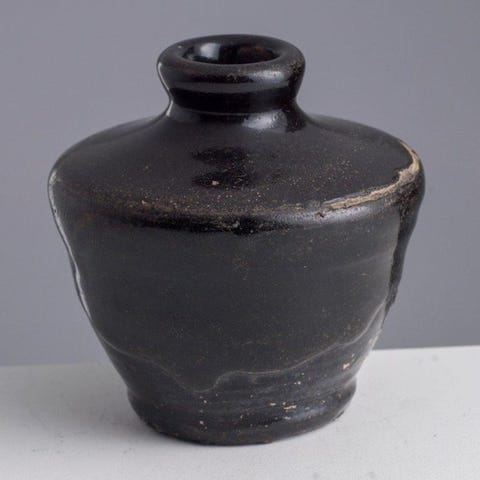 Traditionelt identificeret som Song/Yuan-dynastiet (11.–14. århundrede). Den har en "Henan-type" eller Cizhou-sort glasur, ofte omtalt som "Tenmoku" eller "olieplet" afhængigt af de specifikke brændingsvariationer.