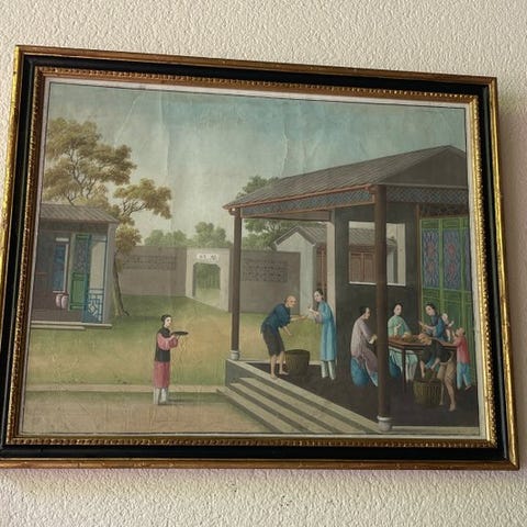 Et gammelt kinesisk panel er et Qing-dynastiportræt af en ældre gruppe, en form for rituelt kunstværk brugt til at ære flere generationer af familiemedlemmer.