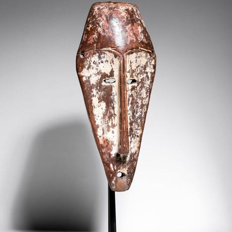 Sjældne er Lega Likungu masker af gammel fortid tilbudt på markedet, og endnu mere er de miniatureeksempler af denne kvalitet. Oprindelig fra Øst-Congo (regionerne Kivu og Maniema), udmærker denne antropomorfe maske sig ved en skulpturel skrift med stor sobriety og bemærkelsesværdig håndværksmæssig dygtighed.