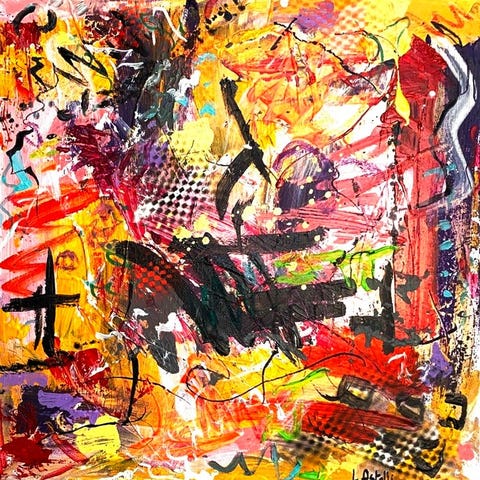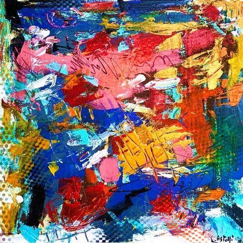 Acrylmaleri på lærred på 60 x 60 cm, underskrevet nederst til højre og med titel og underskrift på bagsiden. Ægthed på foto udleveret af kunstneren. . Maleri med stor fascinationskraft og behag, som vil give jeres hjem og jeres samling prestige. Forsendelse forsikret og sporbar med expressbud, og der garanteres omhyggelig og professionel emballage. Værket er i perfekt bevaringsstand.