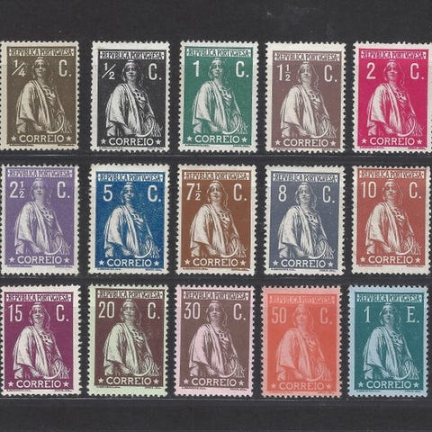 Portugal, komplet Carlos I-serie fra 1895, ny uden lim, Mundifil 126/39 og 140/47. Klik på den blå "gå til varen" knap, for at købe eller byde på denne vare. Den samlede pris vil blive vist inden du afgiver dit bud.