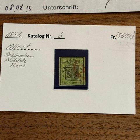 Det er et autentisk frimærke uden fejl, ét frimærke, lilla-gråt, brugt. Det har en original annullering. Schweiz 1854.