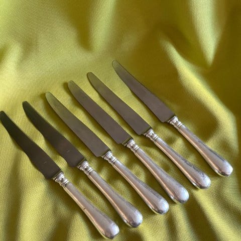 Ensemble af 12 fiskeknive fra Christofle model Marly i sølvbelagt metal.