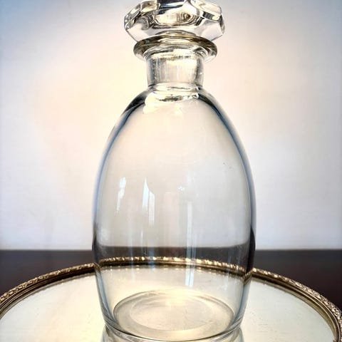 1 Stor prydkaraffel: Højde 40 cm (låg inkluderet). Klar og rubinrød krystal. Den bærer stadig sin oprindelige gyldne etiket, et bevis på ægthed.