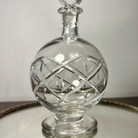 FR : Exceptionelt prestige-sæt fra den berømte belgiske glashåndværksfabrik Val Saint-Lambert. Dette håndskårne krystaloverlaysæt (overlay) illustrerer toppen af fabrikationens håndværk i midten af det 20. århundrede.