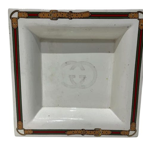Gucci porcelæn vintage mugg fra 1980'erne, højde 10 cm, diameter 7 cm, hvid/grøn/rød, oprindelse Storbritannien, med æske, i fremragende stand med minimal slid, en smule snavs på bunden fra opbevaring. Klik på den blå "gå til varen" knap, for at købe eller byde på denne vare. Den samlede pris vil blive vist inden du afgiver dit bud.