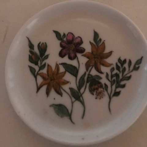 Lille fin oval tallerken / kuvertaskebæger med sølvkant fra Københavns Porcellains Maleri.