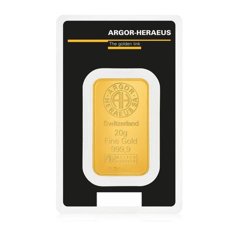 Argor-Heraeus 10 grams guldbar med fineness 999,9/1000, produceret i Schweiz, forseglet med certifikat og LBMA-certificeret, dimensioner 31,50 × 18,50 × 1,00 mm, leveret i blisterkort. Klik på den blå "gå til varen" knap, for at købe eller byde på denne vare. Den samlede pris vil blive vist inden du afgiver dit bud.