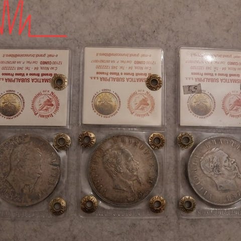 Italien Vittorio Emanuele II 5 lire 1875 Zecca Roma Variante R lille. Vurderet af Numismatica Subalpina i beholdning BB+ Sjælden. Sølvmønt.