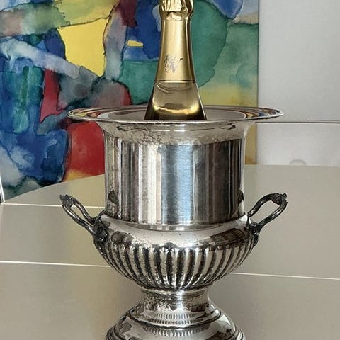 Sølvbelagt Art Deco isskål (isbøtte) og greb til isklumper.
