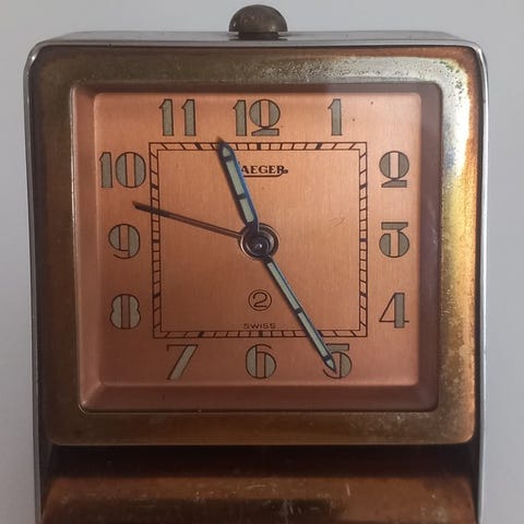 Det afbildede produkt er et gammelt schweizisk bord-/rejsealarmur af mærket Cyma Amic Sonomatic fra 1950'erne eller 1960'erne.