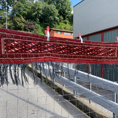 Meget omhyggelig fremstilling af et meget fint tæppe (se foto)