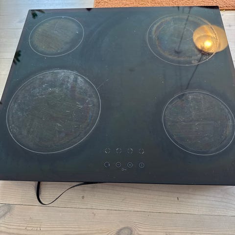 Miele keramisk kogeplade i sort glas. Kogepladen har fire kogezoner markeret i glasoverfladen.