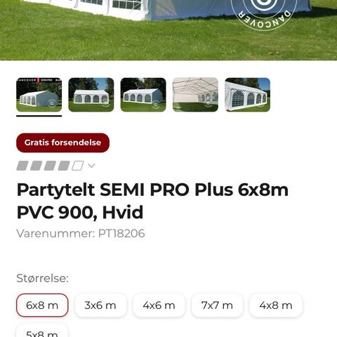 Flot - Dancover telt 5 x 10 M, PVC partytelt i hvid med grå detaljer og vinduessektioner i siderne. Vi har brugt det til sølvbryllup og studentergilde, i sommeren 2025. Ellers ikke brugt.