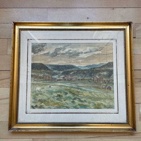 Oliemaleri signeret alundsholm– landskab med guldramme