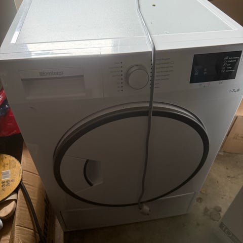 Blomberg kondenstørretumbler 6 år gammel. Tørretumbleren er en kondensmodel, hvor fugten bliver ledt ud gennem en aftræksslange- kan også opsamles i boks i maskinen. Velegnet til indbygning eller placering i bryggers eller badeværelse, hvor der ikke er mulighed for aftræk til det fri.