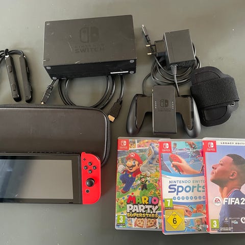Nintendo Switch konsol med Joy-Con og tilbehør