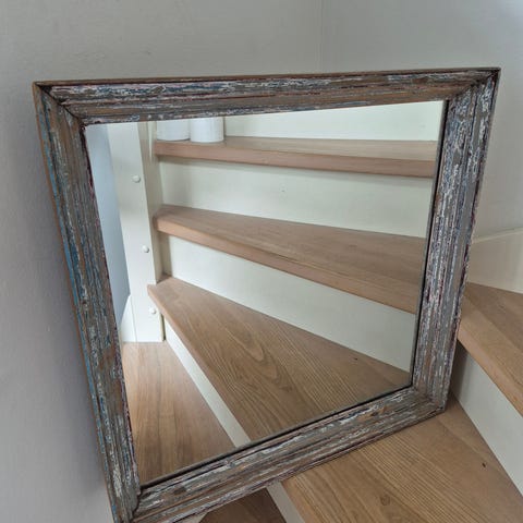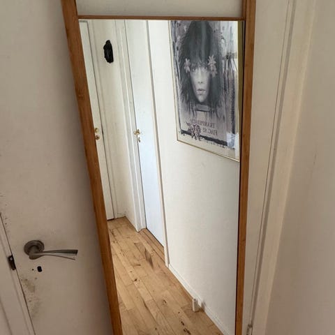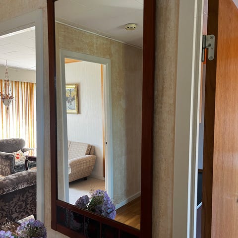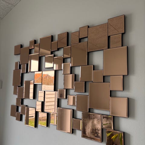 Fint spejl med træramme og mosaikker, måler 68x41 cm
