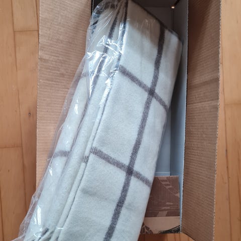 Georg Jensen Damask Bommulsdsplaid i vaffelstrik. Sort/Hvid.Fremstår nærmest som nyt.
