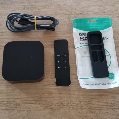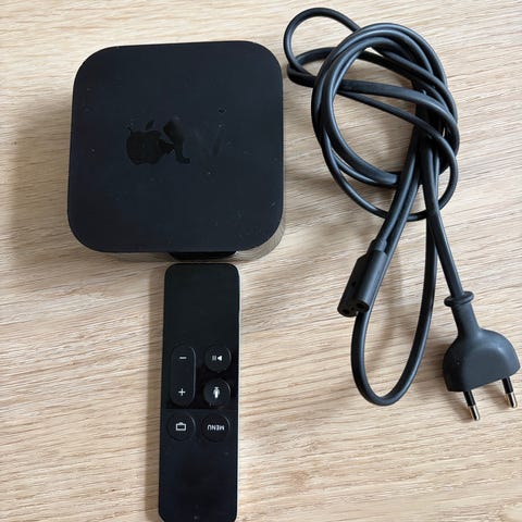 Apple TV 4K medieafspiller i sort med medfølgende fjernbetjening. Enheden tilsluttes tv’et via HDMI og giver mulighed for streaming af digitalt indhold fra kompatible tjenester og enheder. Velegnet til brug sammen med Apple-økosystemet til afspilning af film, serier, musik og andet medieindhold på tv-skærmen.