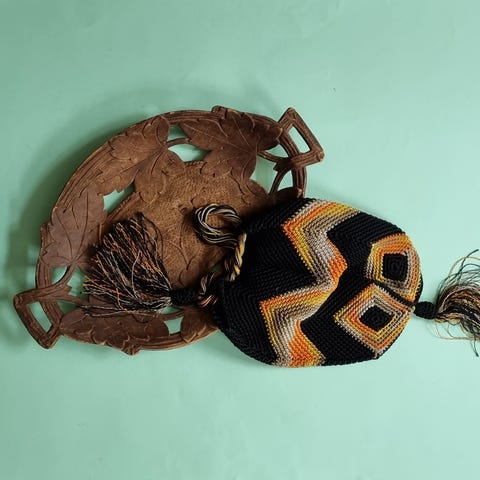 Multifarvet hjemmelavet / hæklet / knyttet taske.