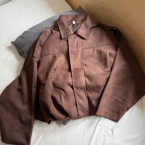 b.young jakke i ruskind til kvinder i str. M. Jakken er beige og har klassisk krave og knaplukning foran. Designet omfatter rynkedetaljer foran samt sidelommer. Materialet er blødt ruskind med glat foer indvendigt. Velegnet som overgangsjakke eller let yderjakke.
