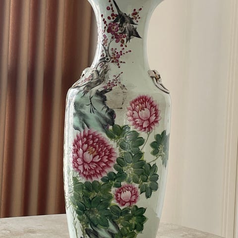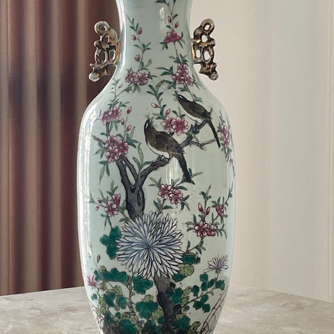 Flot kinesisk vase, 62 cm høj, der er ingen afslag eller skrammer på den.