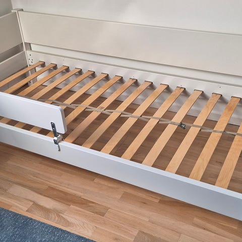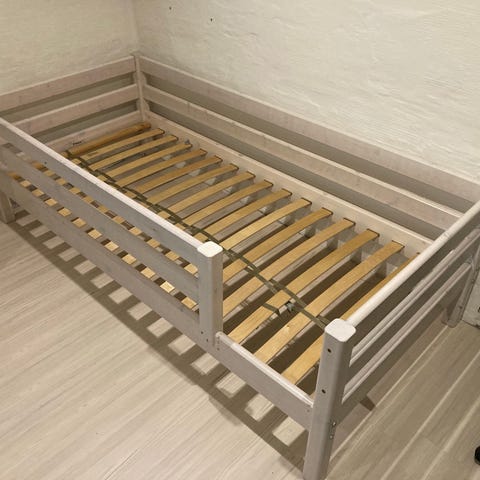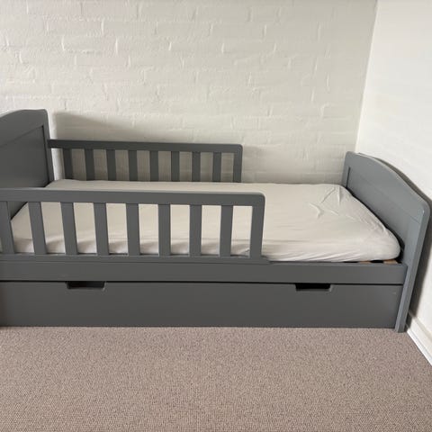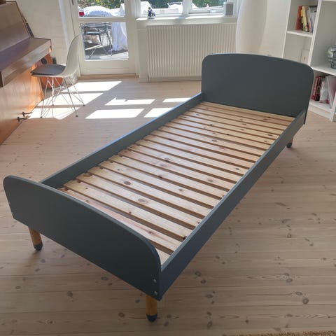 Velholdt Flexa børneseng (96 x 194 cm) i grå sælges.