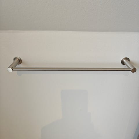 Sælger 4 stk Frost Nova Håndklædestang til badeværelse i børstet stål. Består af 4 lige stænger med vægbeslag og skruer til montering. Egnet til ophæng af håndklæder eller viskestykker på væg i badeværelse eller bryggers. De måler 60cm.