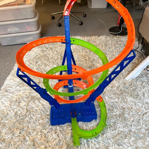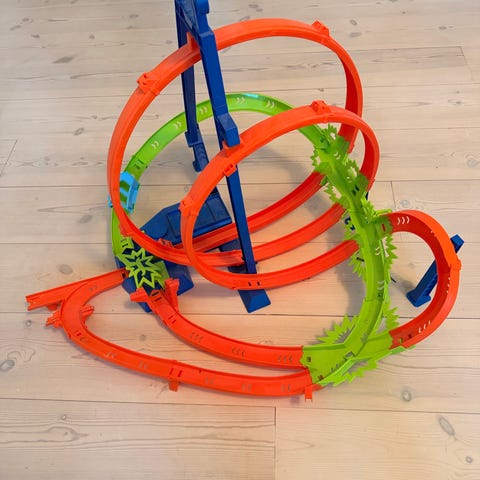 En sjov Hot Wheels bane hvor bilerne bliver skudt afsted ind i loops.