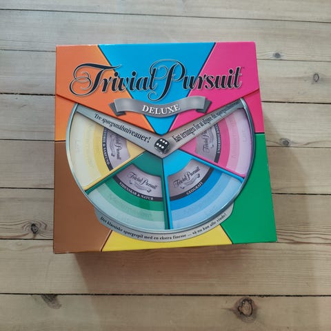 Trivial Pursuit Mastergame brætspil. Klassisk videns- og quizspil med spilleplade, kort og spillebrikker. Spillet går ud på at besvare spørgsmål i forskellige kategorier og samle ostestykker i sin spillebrik. Velegnet som selskabsspil for flere deltagere.