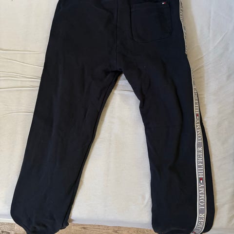 Tommy Hilfiger joggingsæt til dreng i bomuld, str. 164. Sættet består af grå sweatpants med logo langs benet, grå sweatshirt med brede striber i navy, hvid og rød forneden samt grå hættetrøje med gennemgående lynlås og lille logo på brystet. Alle dele er i blød bomuldsjersey med børstet inderside. Velegnet som afslappet hverdagstøj eller sportstøj til dreng i størrelse 164.