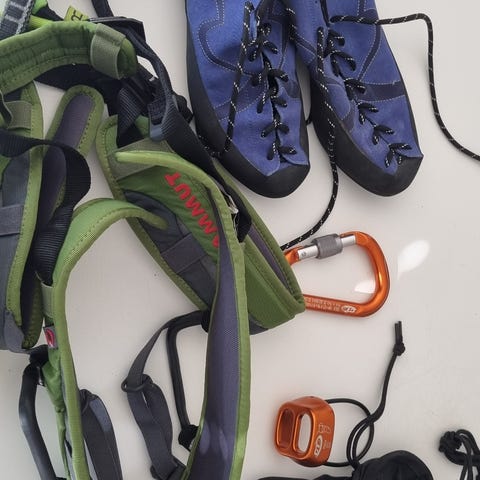 Jeg har samlet lidt forskellig klatresele dele igennem årerne. Noget er blevet brugt til udvikling af nyt spænde udstyr og bælter, men nu er jeg nået der til, hvor det skal videre og nye øjne skal finde glæde ved det. Kassen følger med :-)