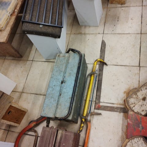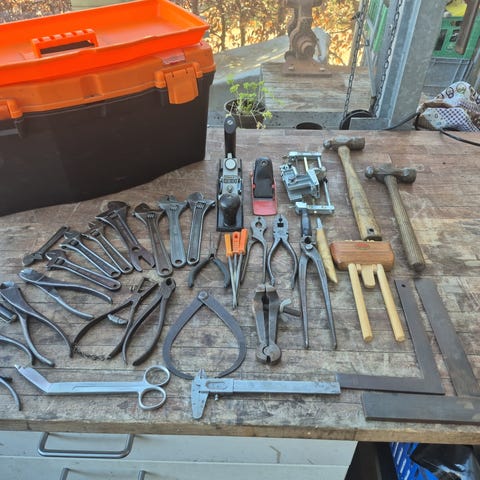 Blandet håndværktøj i plastkasse