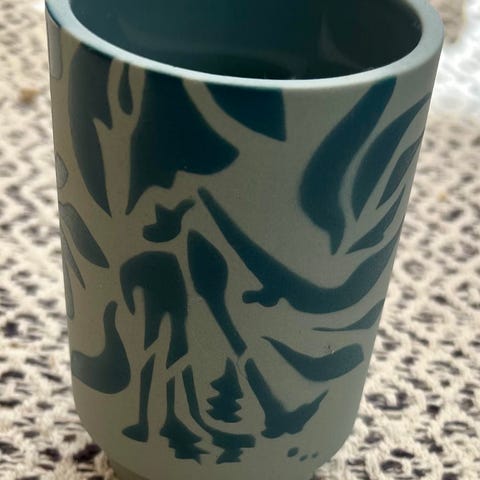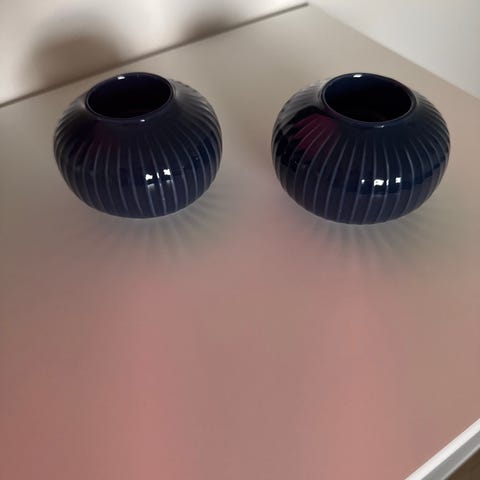 Kähler vase i Petroleumsblå. Har også vasen og en fyrfadsstage i grøn, ved interesse.