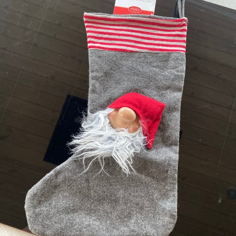 Jysk Tjalfe julestrømpe rød med nissemotiv