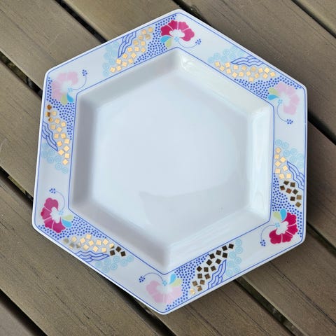 Stort Søholm Facet fad fra 90érne, designet af C&C Holmgren. Hvid porcelæn med smukke grafiske dekorationer i blå og sølv. Dia 33cm, højde 5cm. Meget fin stand.