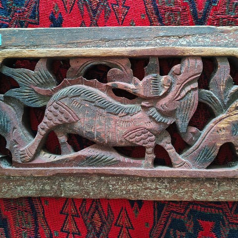 Vintage / antik håndskåret træpanel/relief