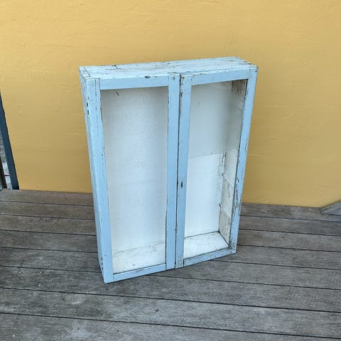 Vægskab træ blå med glaslåge