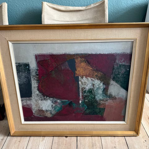 Svend Bruun akrylmaleri 40x40 cm rød og sort