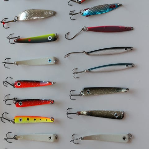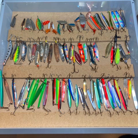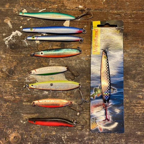 Blandede gennemløbsblink og kystwoblere til fiskeri. Sættet består af flere blink i forskellige farver og former, nogle med enkeltkrog og andre med trekrog. Velegnet til kyst- og spinnefiskeri efter blandt andet havørred og andre rovfisk.