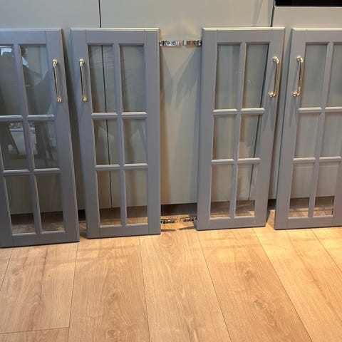 De er hvide på bagsiden (oprindelig farve), og malet en fin sart lyseblå på forsiden.