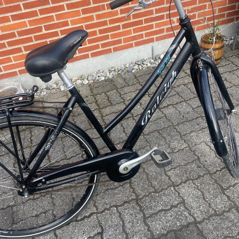 Lås nøgle, 8 gear, ringklokke, lys i bag. Drikkedunk holder. Bagagebærer.
