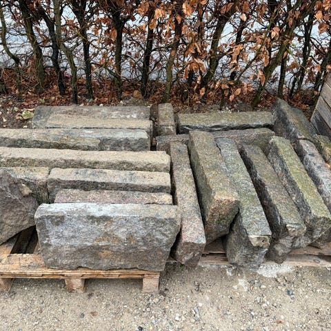 Granit kantsten buede lysegrå. 8 stk - 73-78 x 30 x 12 cm. 1 stk 55 x 30 x 12 cm. Natursten. Næsten nye. Kan bruges til bedafgrænsning, bålsted mm. Giv gerne et bud😊