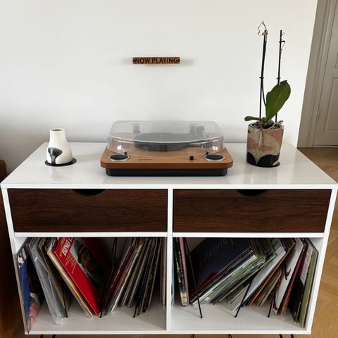 Rigtig godt bord der kan bruges til lidt af hvert. Har selv brugt det til pladespiller og LP'er, men er også fint til andet.