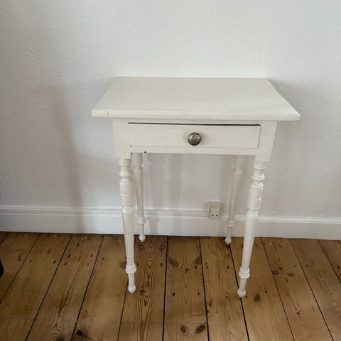 Lille hvidt træbord med skuffe