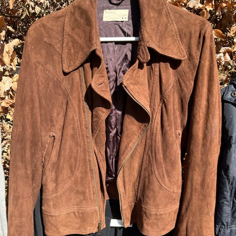 Superlækker jakke i det blødeste hindbærrene gedeskind. Ryglængde ca 75 cm, ærmelængde ca 60 cm.