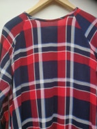 Skjortekjole, Native Youth, str. M, blå,rød,hvis, 100% viscose, Næsten som ny, Skøn kjole/tunika i det blødeste stof. Lange ærmer. Lukkes med skjult lynlås bagpå. Skråkant ved halsudskæring af samme stof. Længde foran 75 cm og bagpå 86 cm. Er desværre blevet for lille.