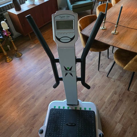Sælger denne VibroShaper vibrationsplade (model E380), da den desværre ikke bliver brugt. Den er købt i Tyskland og fremstår som fuldstændig ny – brugt meget få gange.Alt originalt tilbehør medfølger: fjernbetjening, træningselastikker og strømkabel. Det hele ligger i den originale emballage (kasse), hvilket gør den nem at transportere eller give som gave.Enheden er perfekt til effektiv hjemmetræning, muskelopbygning og fedtforbrænding. Maks. brugervægt er 100 kg.Prisen er 1.000 DKK, men kom gerne med et seriøst bud ved hurtig handel.